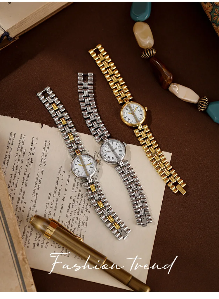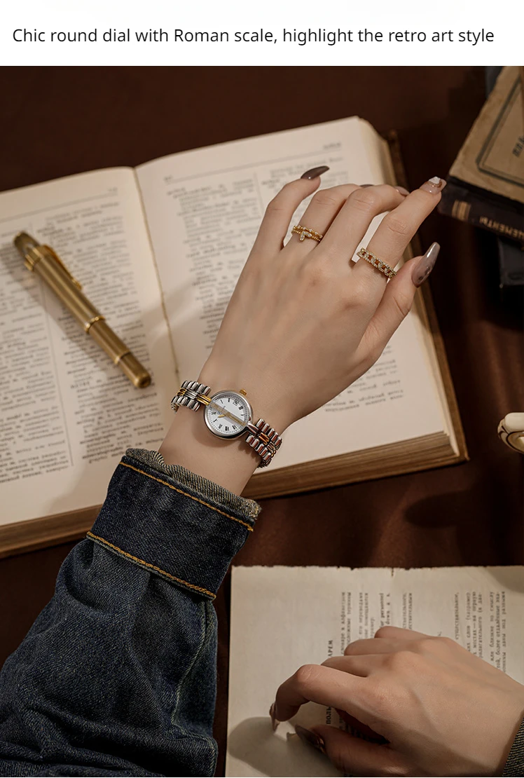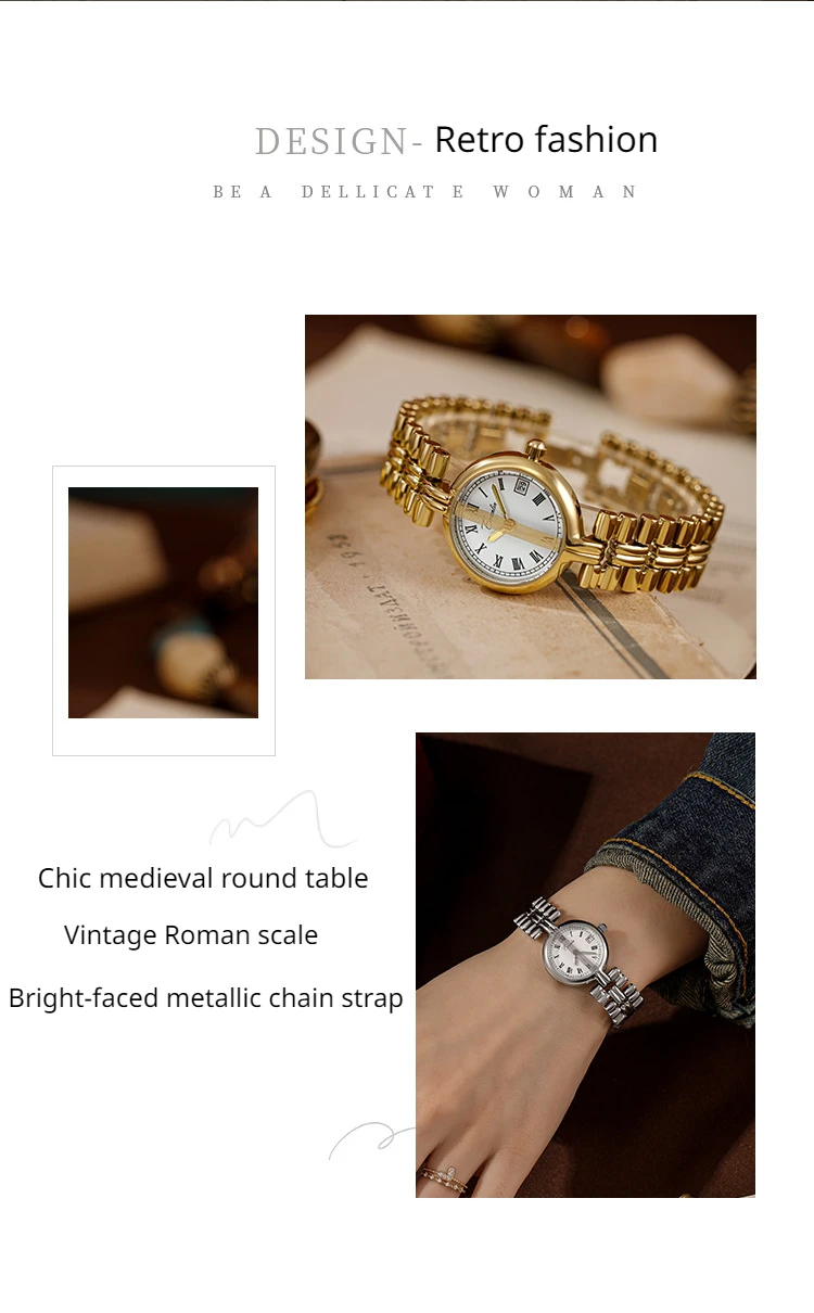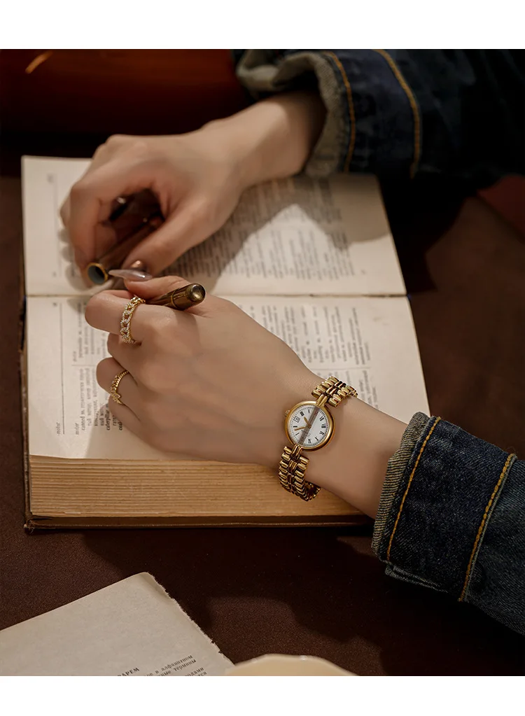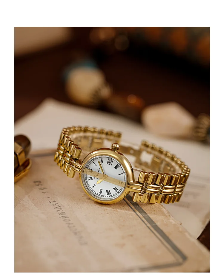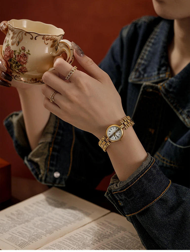 Vintage small gold watch round dial bracelet quartz watch stainless steel elegant woman watch for women gift Relogio Feminino